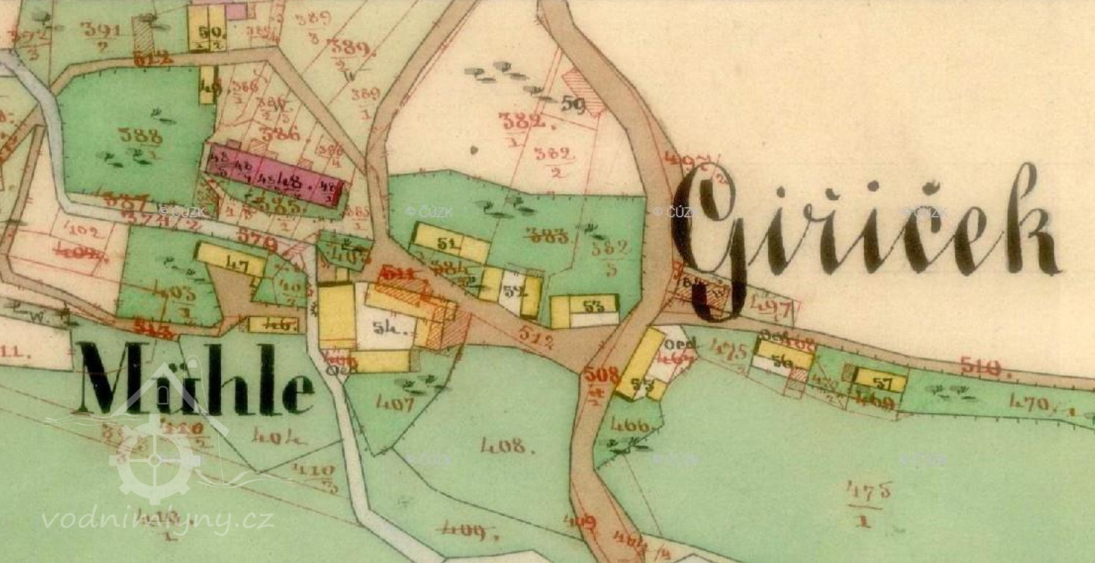 PopisV r. 1930 zde byla Francisova turbína, průtok 0,21 m3/s, spád 4,4 m, výkon 9,4 k.