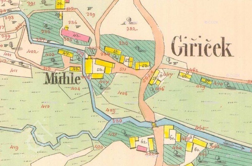 Mlýn je zakreslen již na mapě I. vojenského mapování.