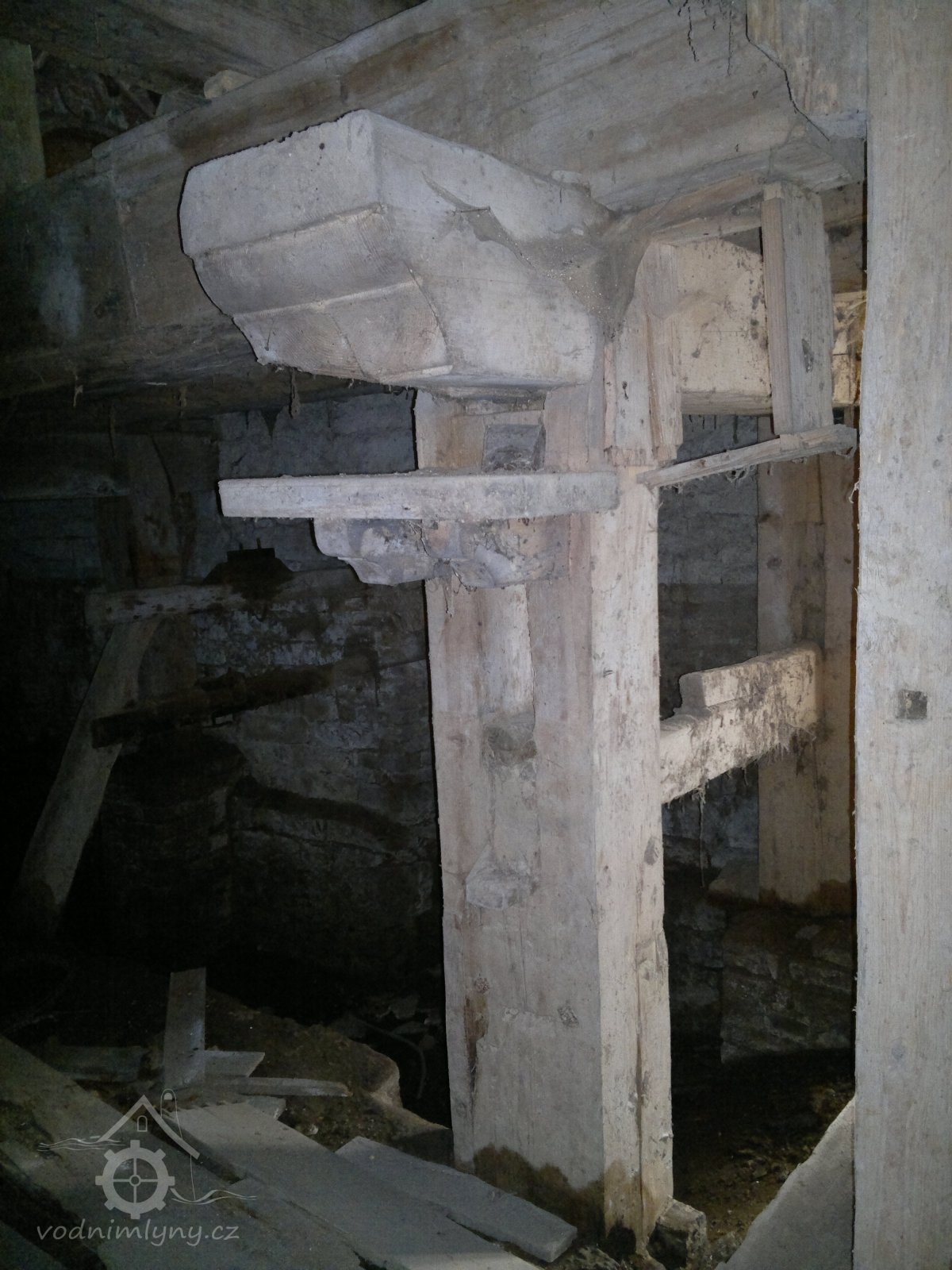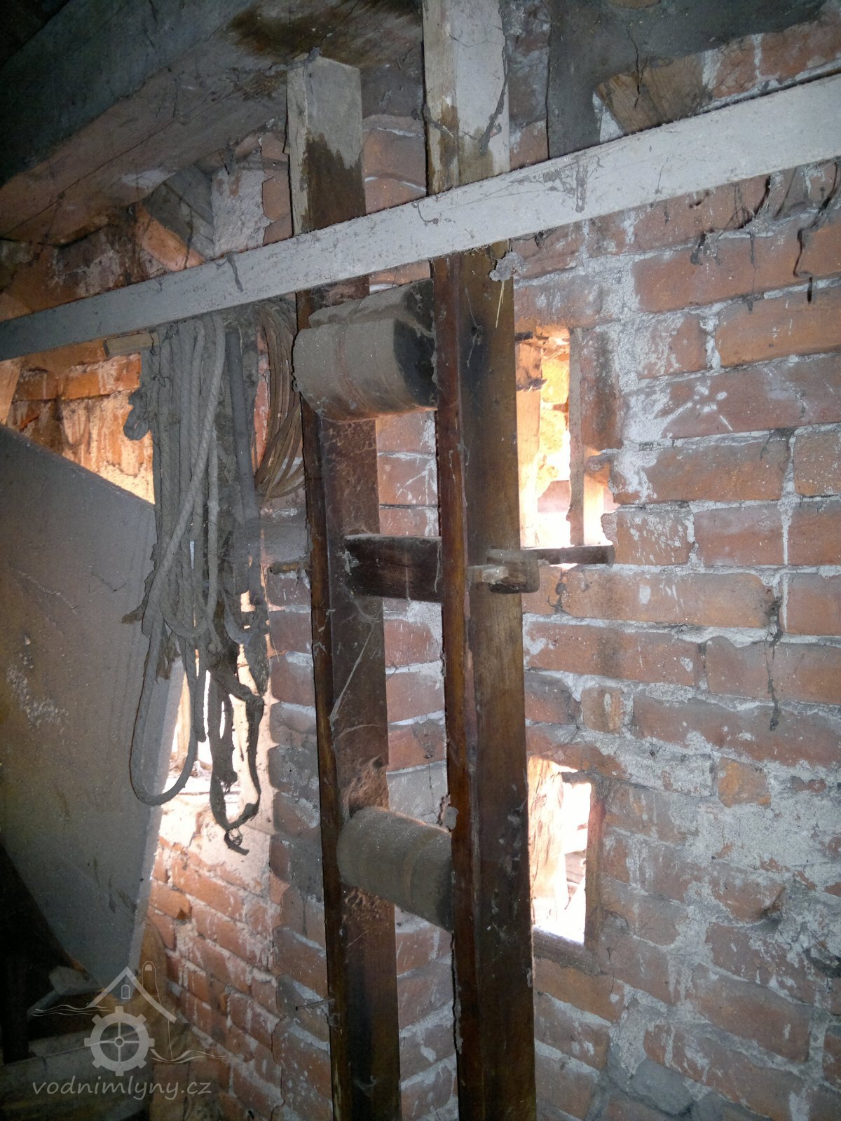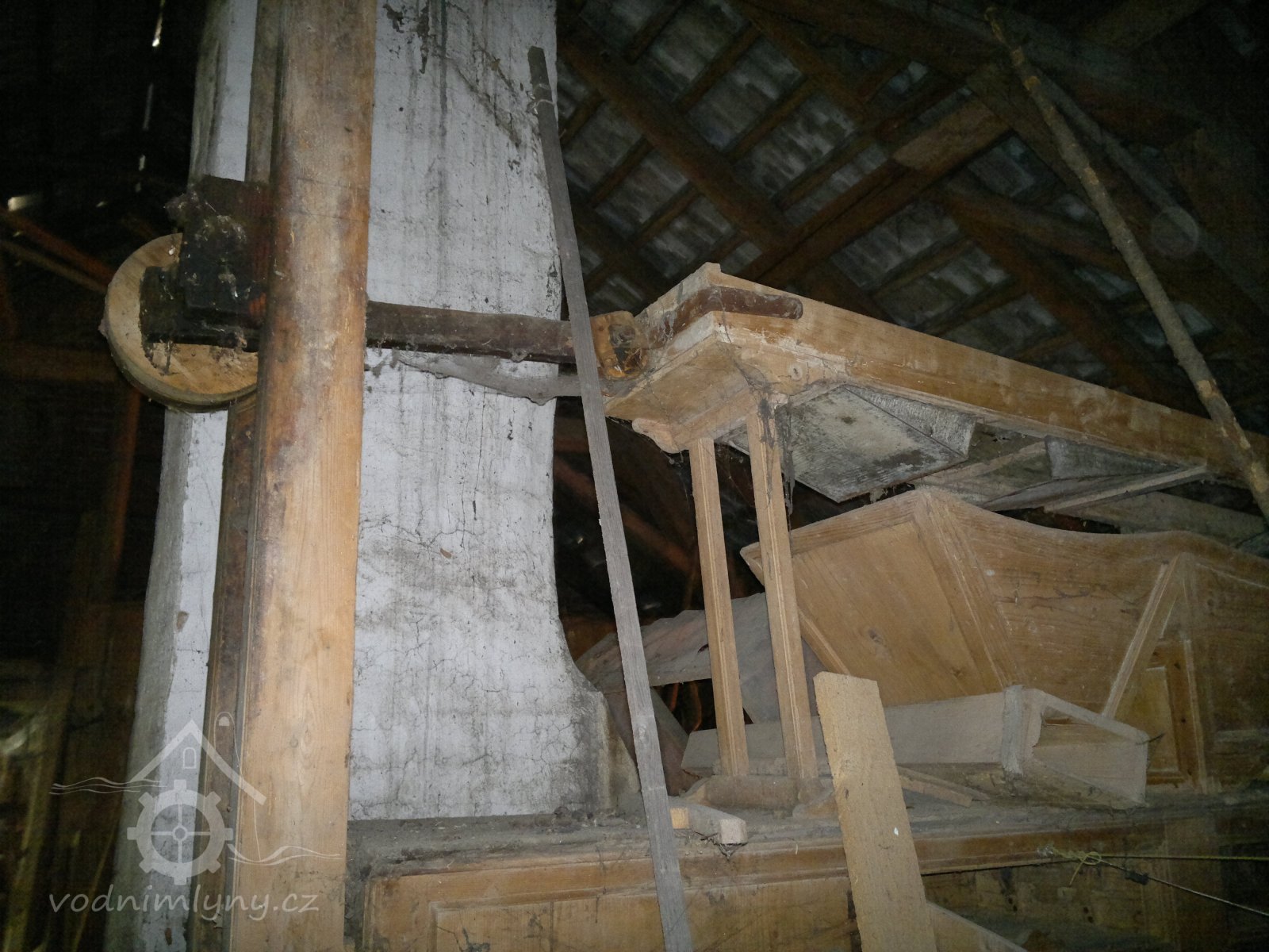 Transmise, paleční kolo, převody, kapsové výtahy, čistící zařízení, mlecí kameny, moučnice, vodní kolo s hřídelí.