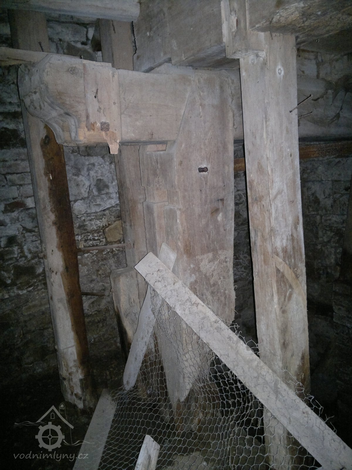 Celodřevěné vodní kolo o diametru přes 4 metry. Dnes není vodní kolo ani hřídel dochovány, hřídelový otvor byl zazděn.