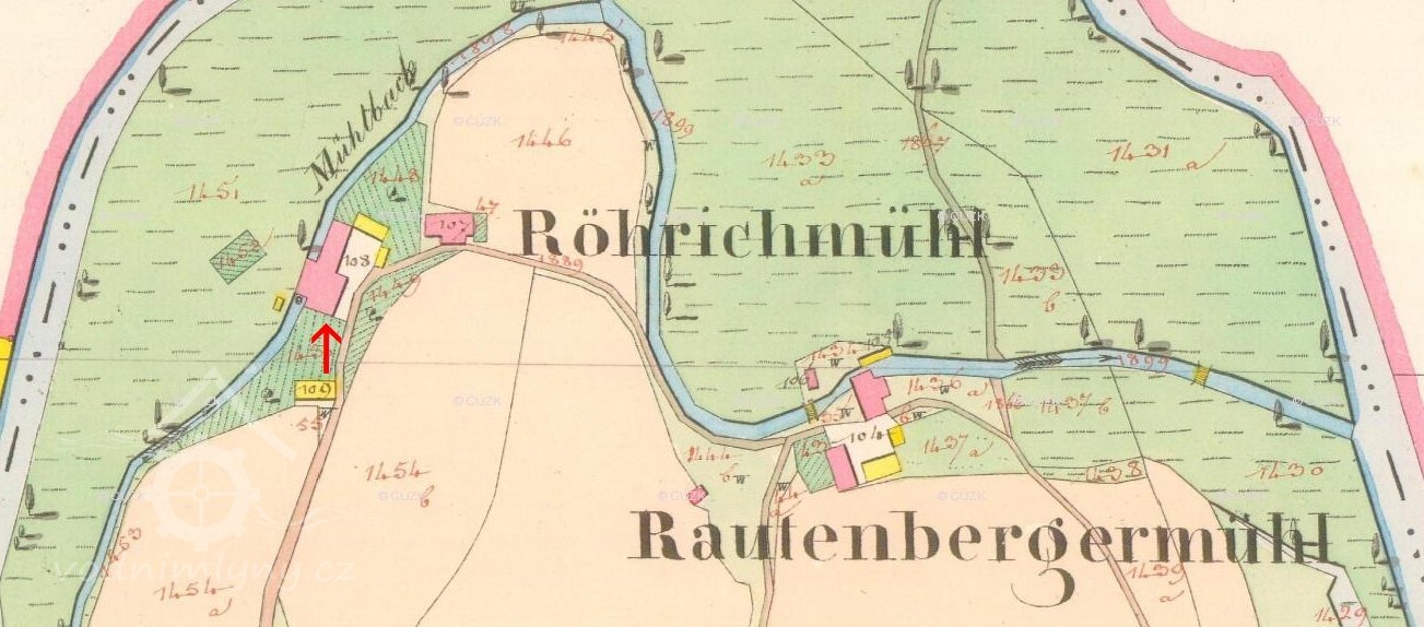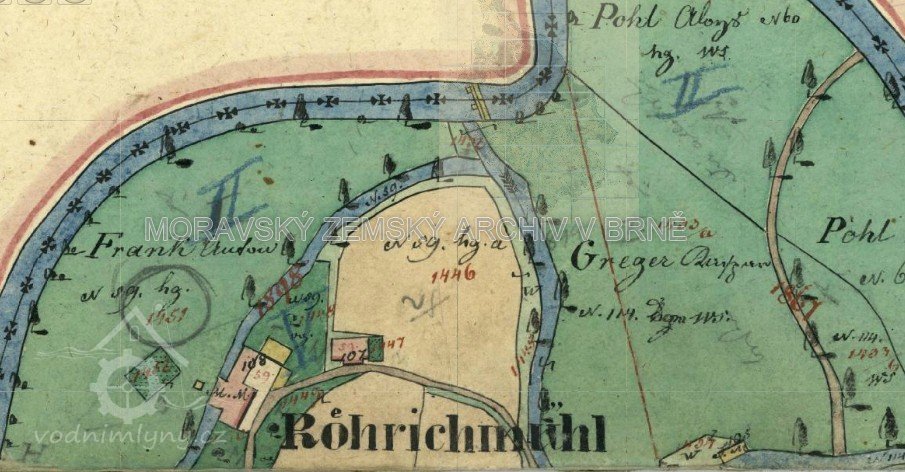 V r. 1834 je psán majitel mlýna Anton Frank. Původní č. p. bylo 59.