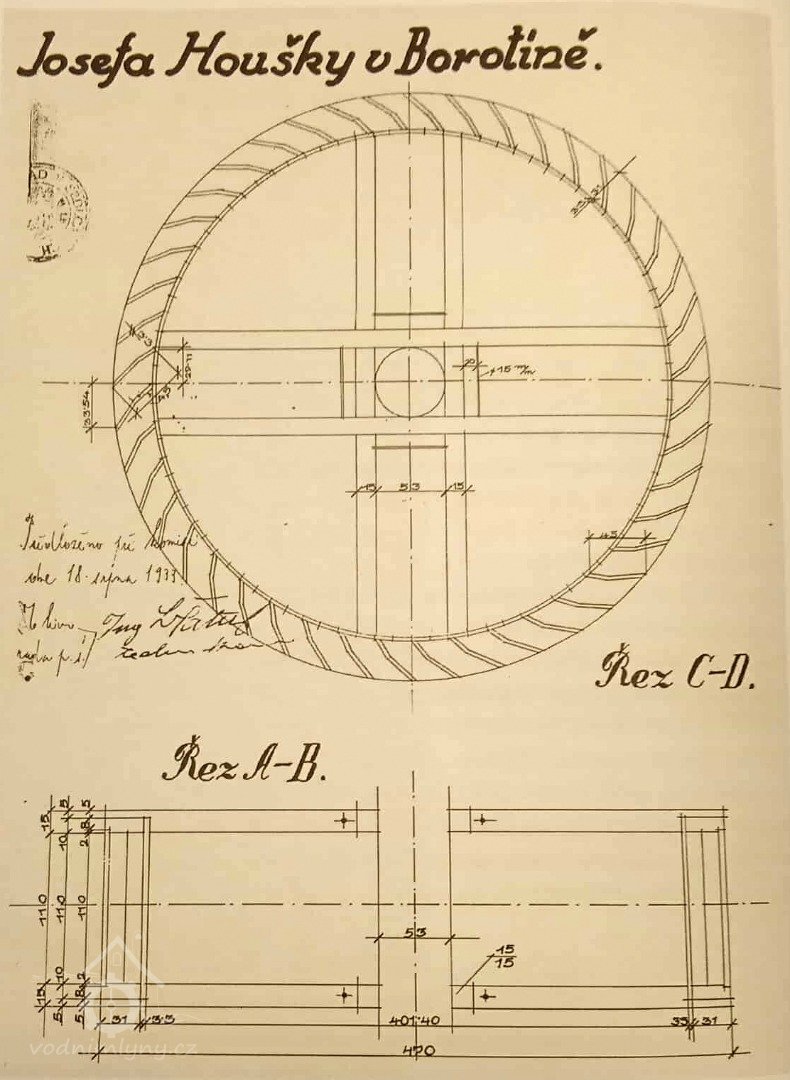 Popis1930: 1 kolo na svrchní vodu, hltnost 0,108 m3/s, spád 5,5 m, výkon 5,14 HP