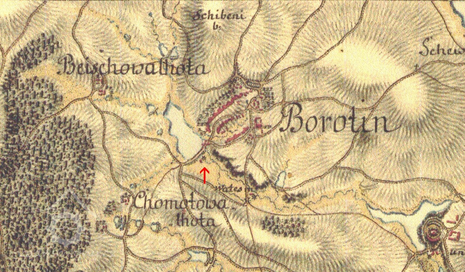 1546 Jan Černčický z Kácova prodal dům panský v Borotíně s polovinou městečka a dvěma mlýny a rybníky Benešovi ze Sendražic