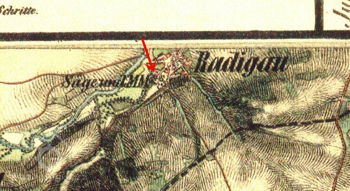 Mlýn se nacházel na JZ okraji obce Radechov.
