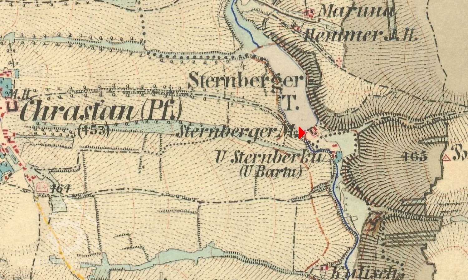 Str. 12 V r.1712 zřídil se za poručníka Františka Leopolda hraběte ze Stenberga, pána na Žirovnici, Počátkách, Stráži a Grübergu pod Chrášťany rybník, u něhož byl mlýn.