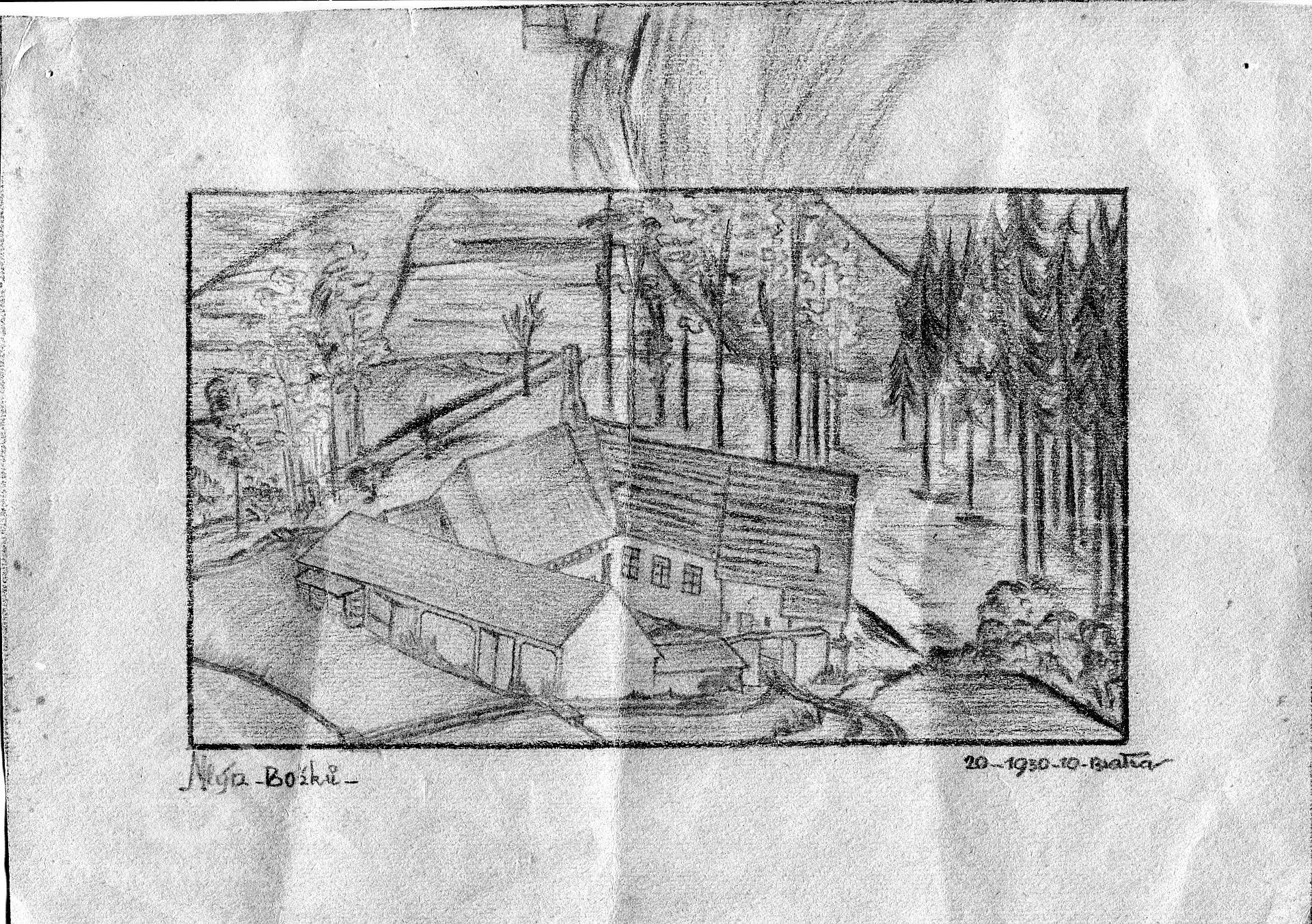 Na dvoře v opřevýšení 2-3 m byl práh z velkých kamenů, dominantou stavby byl obroivsjý šestuboký komín. V přízemí 2 místnosti, nad mlýnicí podkrovní byt.