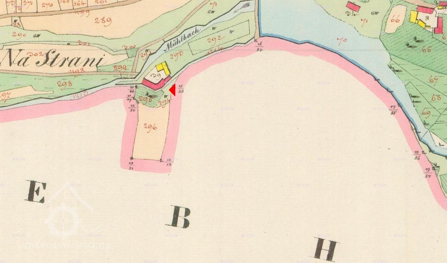 Za stavením byl náhon, takže mlýn stál na jakémsi umělém ostrově.