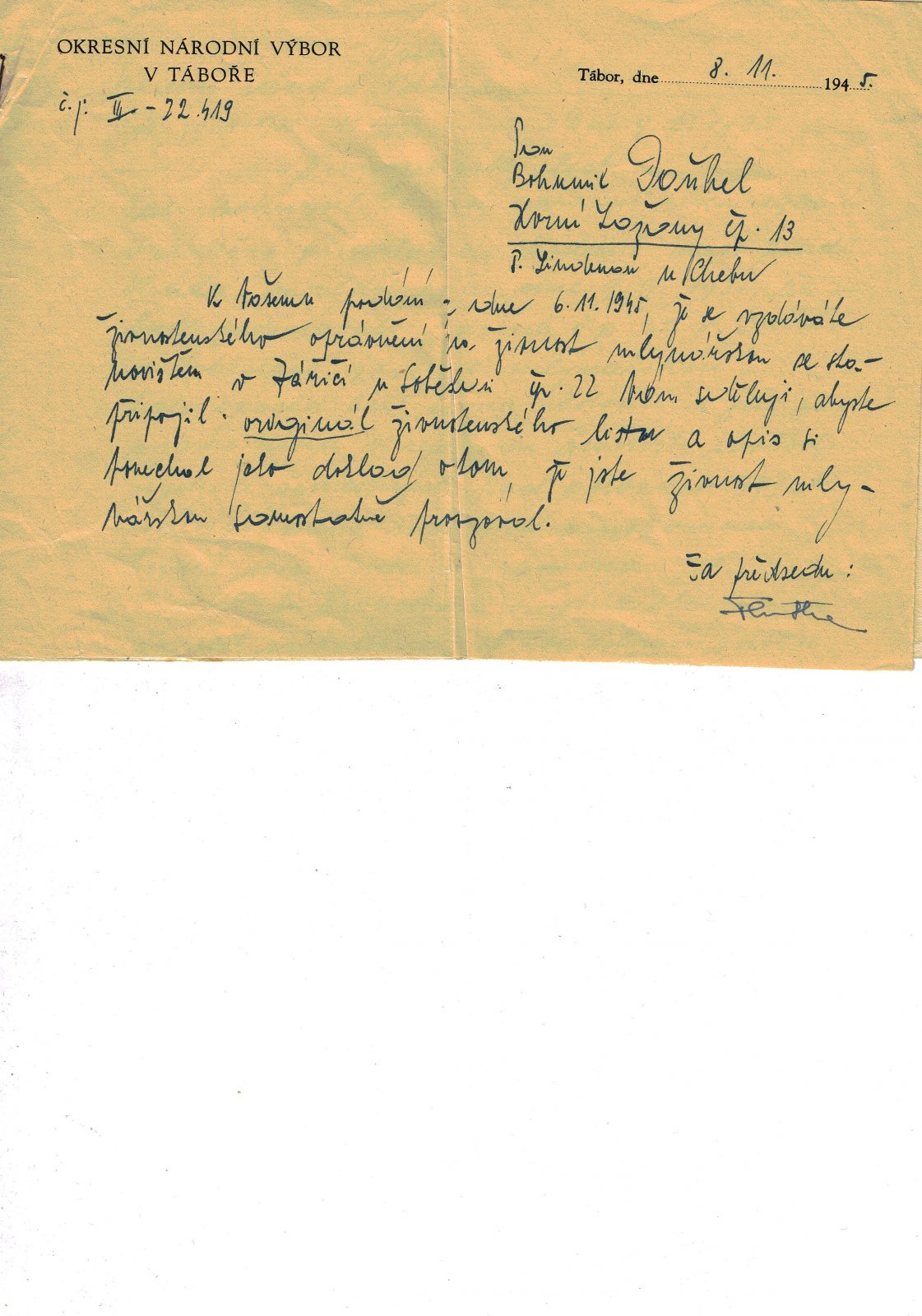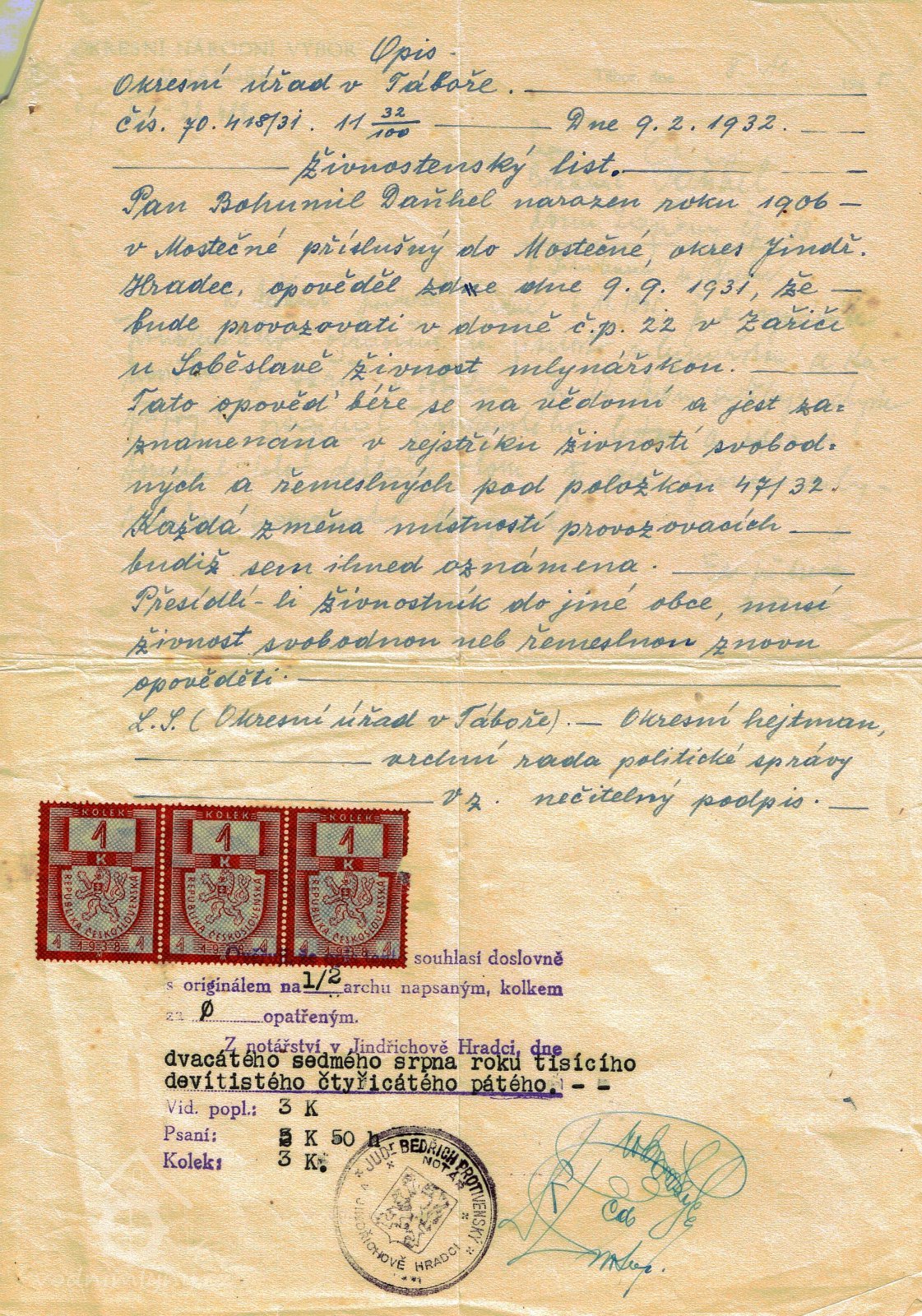 Samozásobitelské dávky zprvu činily 21 kg pš. a ž. dohromady. Jak válka pokračovala tak se dávky snižovaly. Tak činily již jen 13 kg na osobu a měsíc. Za tím účelem, aby nemohli hospodáři více semlít, byly některé mlýny dočasně zastaveny a to od 23.11.1941. Tím byly v naší obci oba mlýny uzavřeny. Jde o mlýn p. V. Šťastného č.21 a F. Votruby č.22. Naše obec byla přidělena k p. Machovi mlynáři do Třebějic.
