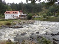 na místo rozpadlého vodního kola zabudovány dvě staré Francisovy turbíny pro výrobu elektřiny