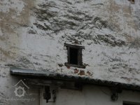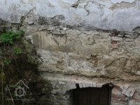a na štítové zdi zašlý rumělkou psaný nápis,