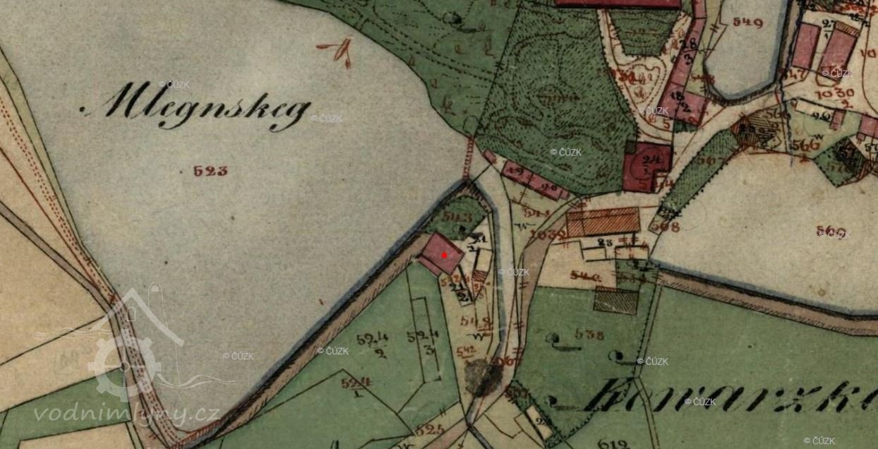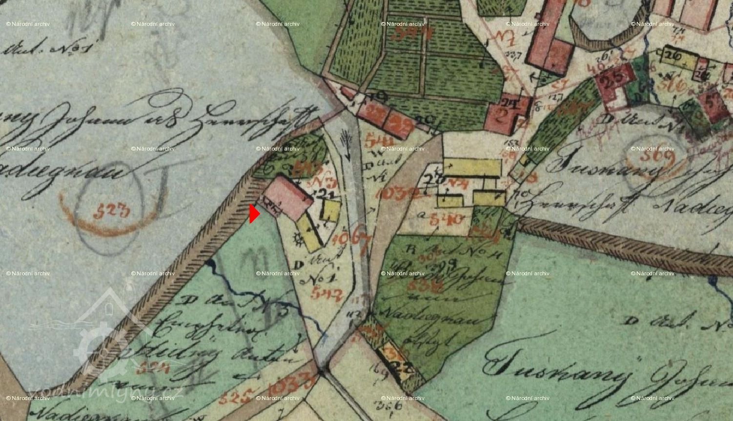Zápisy pro mlýn Nadějkov čp.3 – Pozemková kniha velkostatku Nadějkov viz. https://digi.ceskearchivy.cz/720639/7/4360/2461/44/0