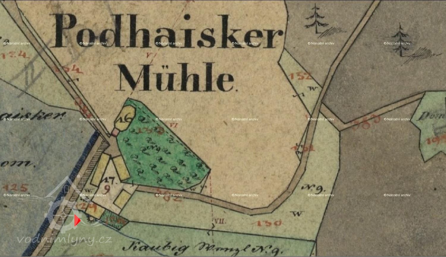 Na rybníce č. parc. 125 ležící mlýn čp.9 tzv. Podhajský