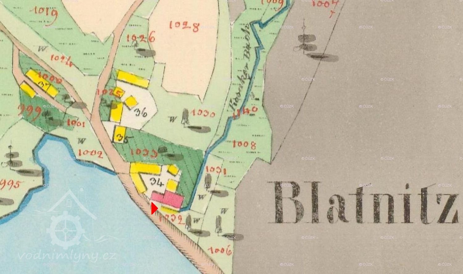 Jméno majitele mlýna a bydliště: Lučan Vojtěch, Blatnice 3