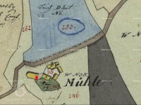 ...Maloježovští dostali příděl půdy z bývalého „Šustova mlýna“, který páni asi v létech 1890 koupili, budovy zrušili a pozemky přivtělili k svému panství. V době parcelace stály již jen holé zdi a kde kdysi stával „Šustův mlýn“, jest nyní pěkná louka, první parcel pod hrází po které vede cesta z Velkého Ježova do Pojbuk... Z Malého Ježova dostali půdu... Vaněk Frant. 5 měr pole, 1 míru louky (bývalý rybník u Šustova mlýna)...