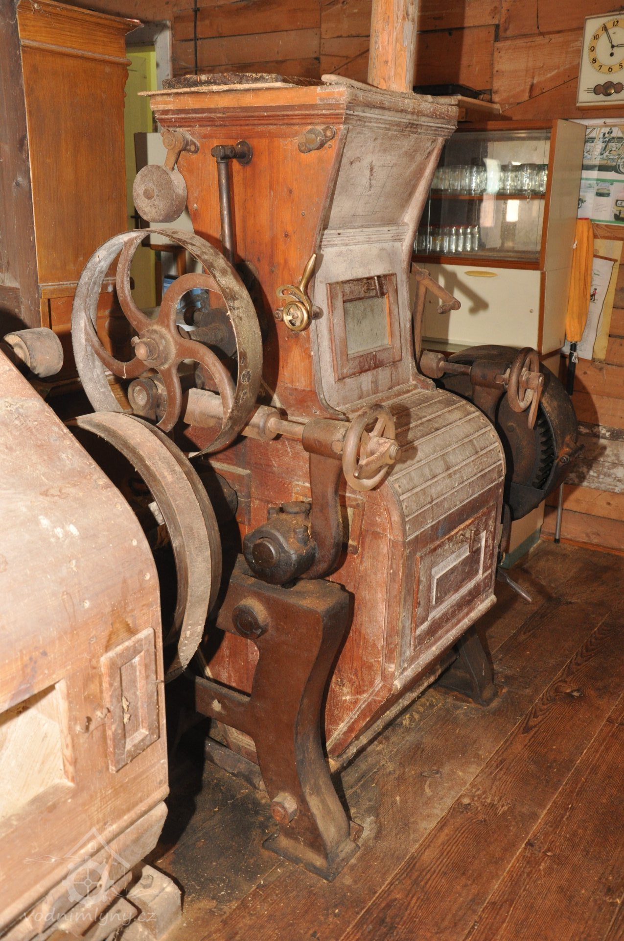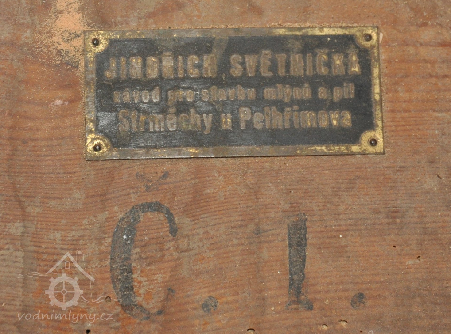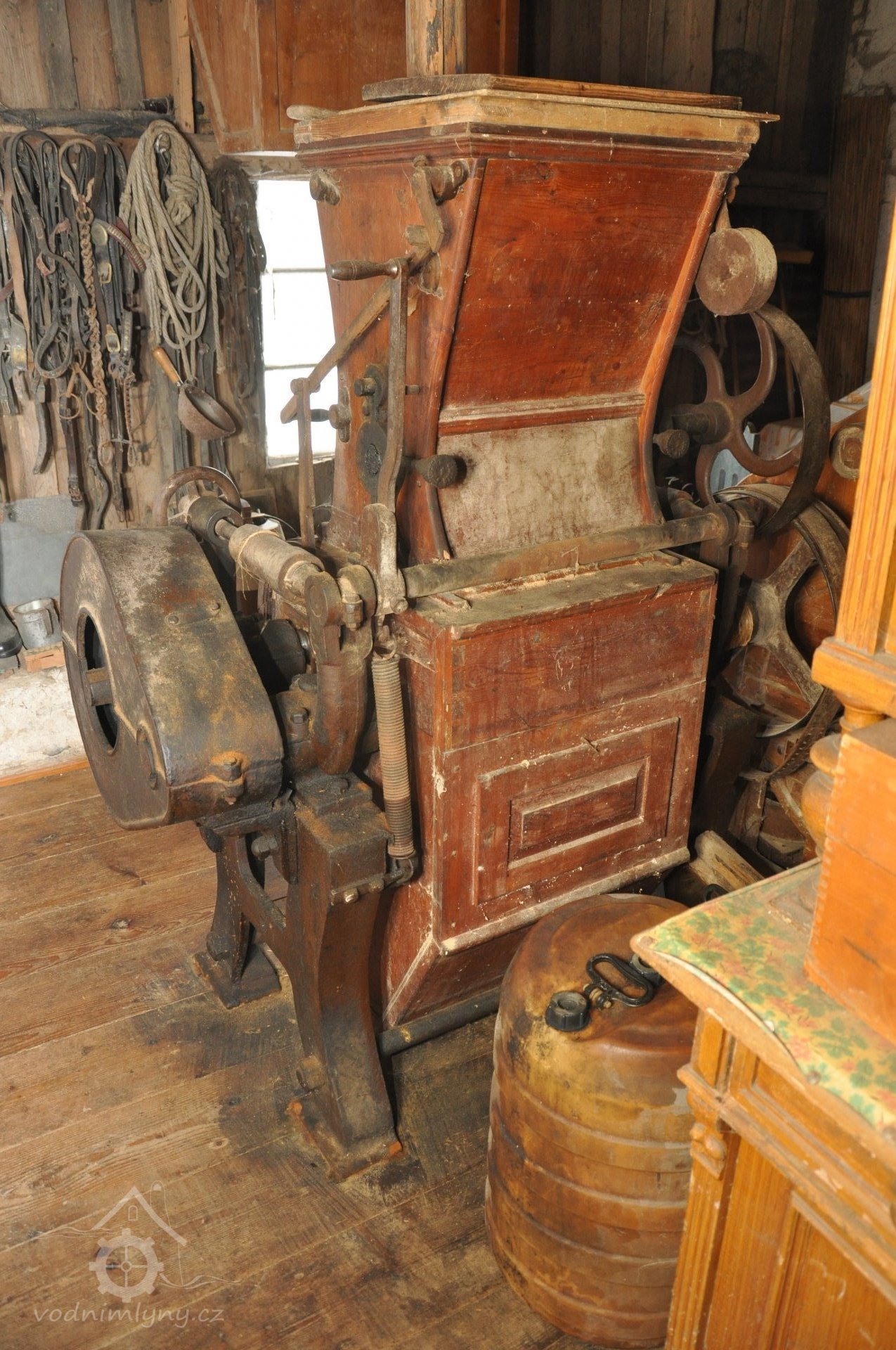 - Na prvním podlaží stojí velmi vzácně dochovaná válcová mlecí stolice (rýhované válce v dřevěné skříni) od firmy Karel Závodský - Želetava. Tento stroj starého konstrukčního systému byl vyroben mezi roky 1888 až 1890, do mlýna byl pravděpodobně osazen ale až později. Vedle válcové stolice je taktéž velmi vzácná průchodová loupačka od firmy Jindřich Světnička - Strměchy u Pelhřimova (pravděpodobně vyrobená mezi rokem 1915 až 1925). Dále se zde nachází kombinované filtrační zařízení od aspiratéru loupačky systému autokap/spirokap. V podstřeší dochován jeden hranolový předvysévač s demontovaným pravoúhlým převodem, rozebrané kapsové dopravníky a uskladněno je i torzo velkého moučného hranolového vysévače (z rotoru někdo udělal stolek). Čistící hranolový vysévač bez dochovaného koukolníku lze spatřit v podkolí. Vysévače jsou pravděpodobně taktéž od firmy Jindřich Světnička - Strměchy u Pelhřimova. Krupičný stroj není dochován vůbec. David Veverka - sp. restaurátor starých strojů.