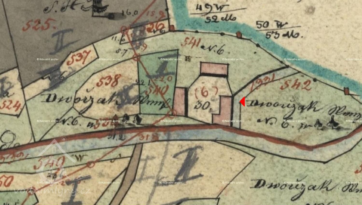 Tehdy měl mlýn vodní kolo o průměru 5 metrů na svrchní vodu. Kolo mělo 36 lopatek s plným průtokem 300 litrů vody za vteřinu a spád vody z náhonu činil 420 – 180 cm. Kolo mělo výkon 14 HP. V té době měl mlýn dvě složení. Pila byla jednuška na Hromadově.