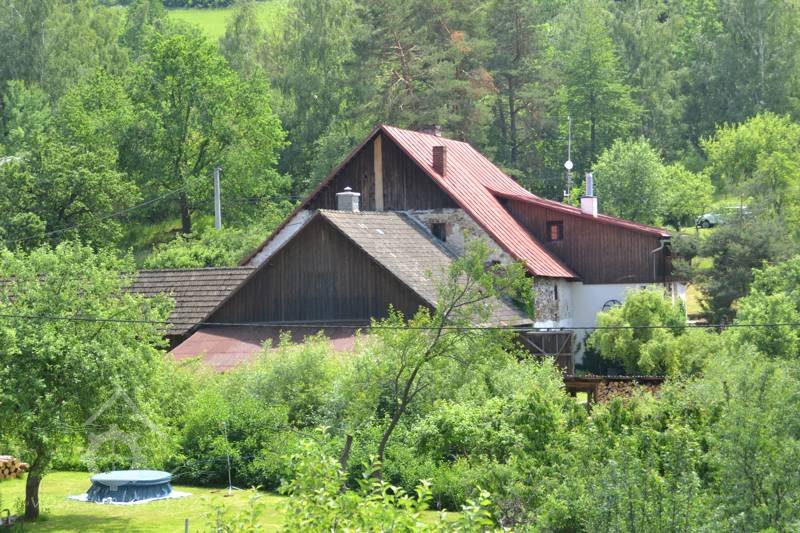 1) Obytné stavení Zčásti kamenná, zčásti roubená stavba s mlýnicí v levé části, na jedné štítové straně s polovalbou, na druhé se sedlovou střechou krytou plechem. Štítová strana z jedné poloviny roubená o dvou okenních osách, z druhé poloviny zděná o 1 okenní ose a vchodu s dvoukřídlými pravoúhlými dveřmi. V lomenici pavláčka s krytým dřevěným zábradlím, kryjící kameny vyskládané zápraží. Mlýnice v přízemí zděná, zbývající část pod pult. stříškou dřevěná, pobitá svisle kladenými prkny. Obytné stavení je položené ve svahu, nad ním dnes vyschlý rybníček, jehož voda poháněla mlýnské kolo, dnes neexistující. Zbytek náhonu pod terasou vedle mlýnice. Zbývající část chalupy zděná, za mlýnicí o třech okenních osách, v patře okénko, všechny pravoúhlé. Na protější straně se vstupem v přízemí jsou v patře proražená 2 široká okna, téměr čtvercová. O budovu hojně opřené bývalé mlýnské žernovy.