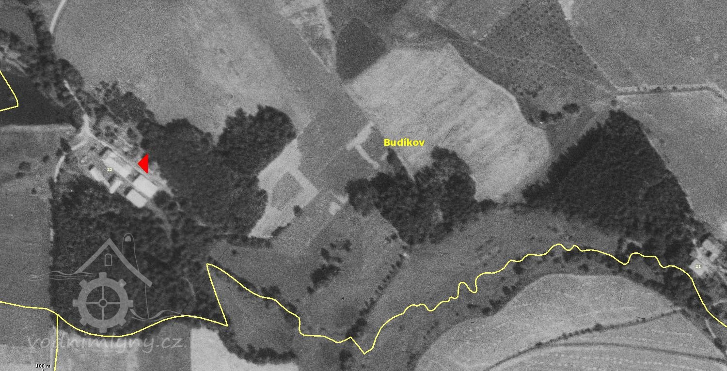 Mlýn čp. 22 v Budíkově leží na pravém břehu Světlického potoka. Před mlýnem se nachází nad obecní cestou malá vodní nádržka – rozšířený mlýnský potok, v níže je zřízen malý splávek se stavidlem pro odpad nepotřebné vody. Dále je z nádržky vedena pod obecní cestou roura 50 cm široká a 24 cm vysoká, uzavíraná ze strany nádržky stavidlem, kterou se pouští voda do mlýnské strouhy.