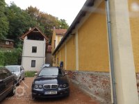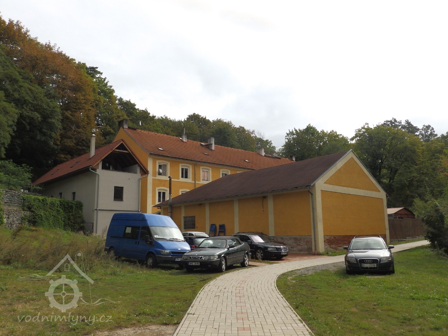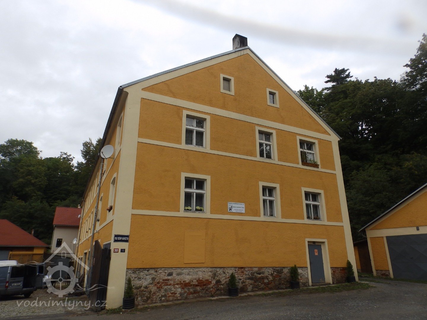 Velká dvojpatrová budova, vzadu příčně stará mlýnice