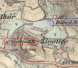 Na mapě II. vojenského mapování je mlýn zakreslen přímo v obci, což však je evidentní tisková chyba MM namísto správného MH, jelikož panský dvůr v obci skutečně byl a naopak tam není žádný vodní tok.
