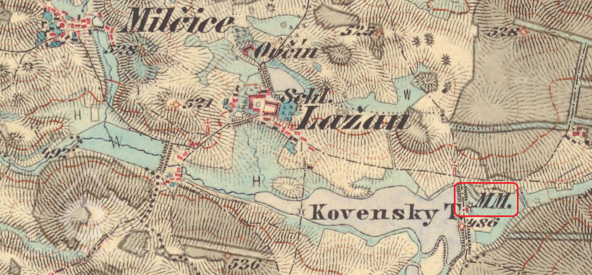 1,2 km východně od kaple sv. Jana Nepomuckého v Lažanech