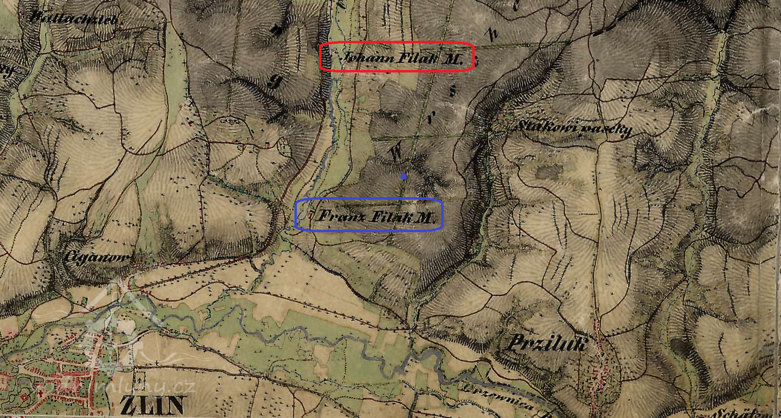 Na mapě z 19.století se jmenuje mlýn Johana Filáka.