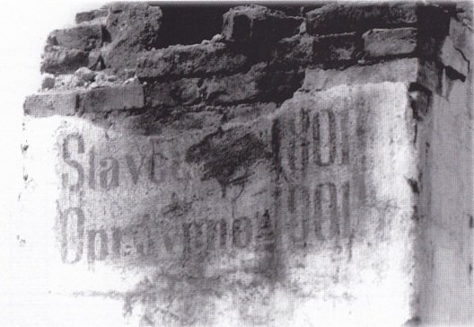 Nápis na komíně mlýna objevený při jeho demolici, 1986, © Otakar Mikulík
