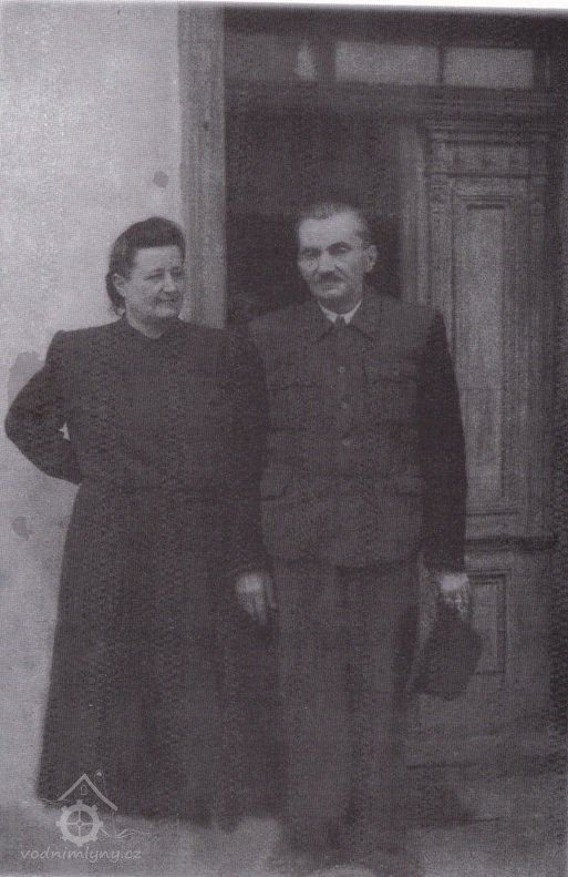 Albína a Jan Hájkovi na jezu u svého mlýna, kol. 1930, © Foto Ing. František Hájek. Archiv Bohumily Hájkové.