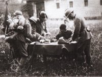 Kapitán Čsl. legií v Itálii Jan Mikulík sedící u stolu před boji na Piavě., 1918, © Archiv Lubomíra Mikulíka.