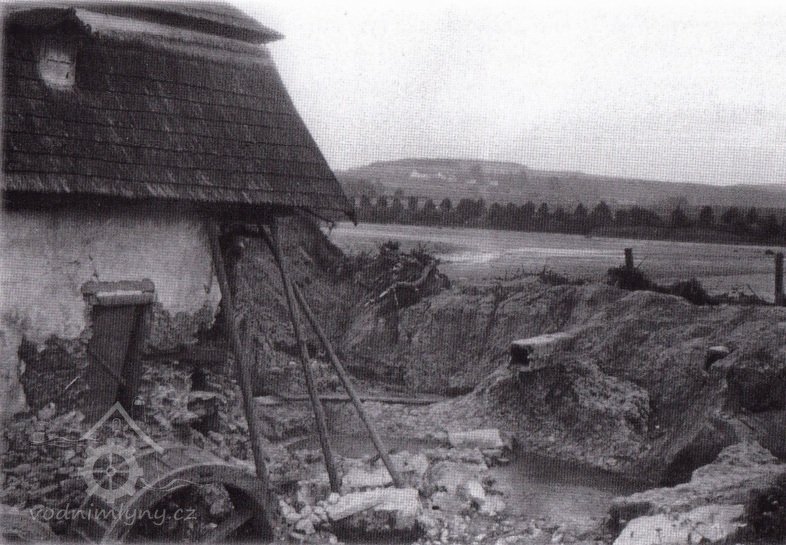 Snímek mlýna po požáru. Pila ani obytný dům nebyly poškozeny., 14. října 1939, © Foto Ing. František Hájek. Archiv Václava Jiřičky.
