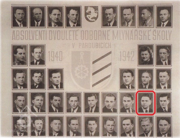 Lubomír Mikulík na tablu absolventů mlynářské školy., 1942, © Archiv Lubomíra Mikulíka.