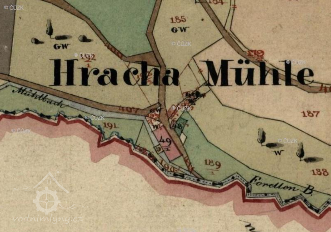 Hrachův mlýn; Hrachmühle, Hrachermühl