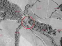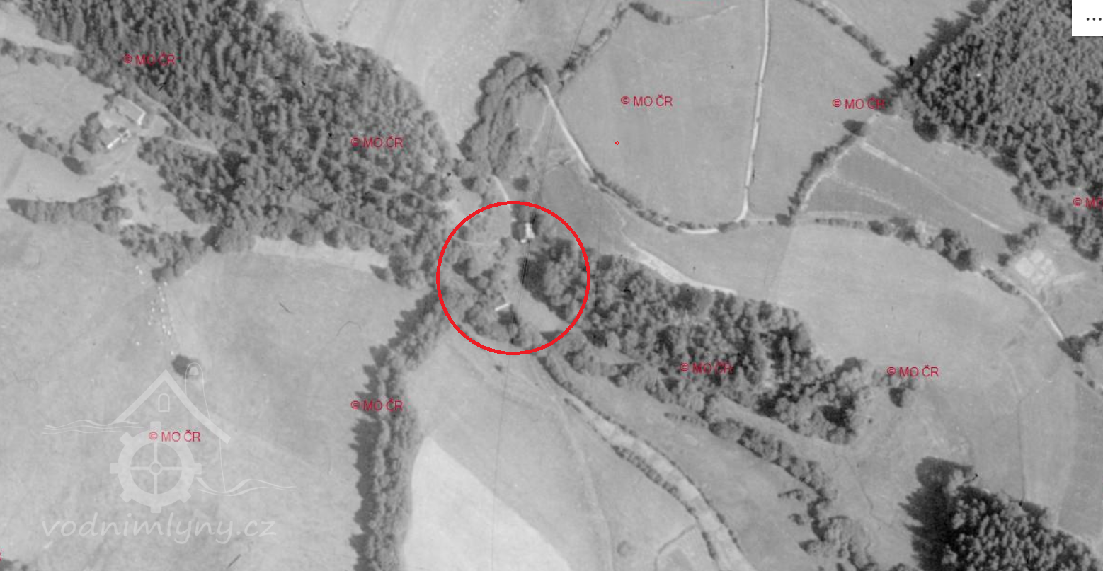 Na leteckém snímku z roku 1957 lze vidět pouze zarostlou ruinu mlýna.
