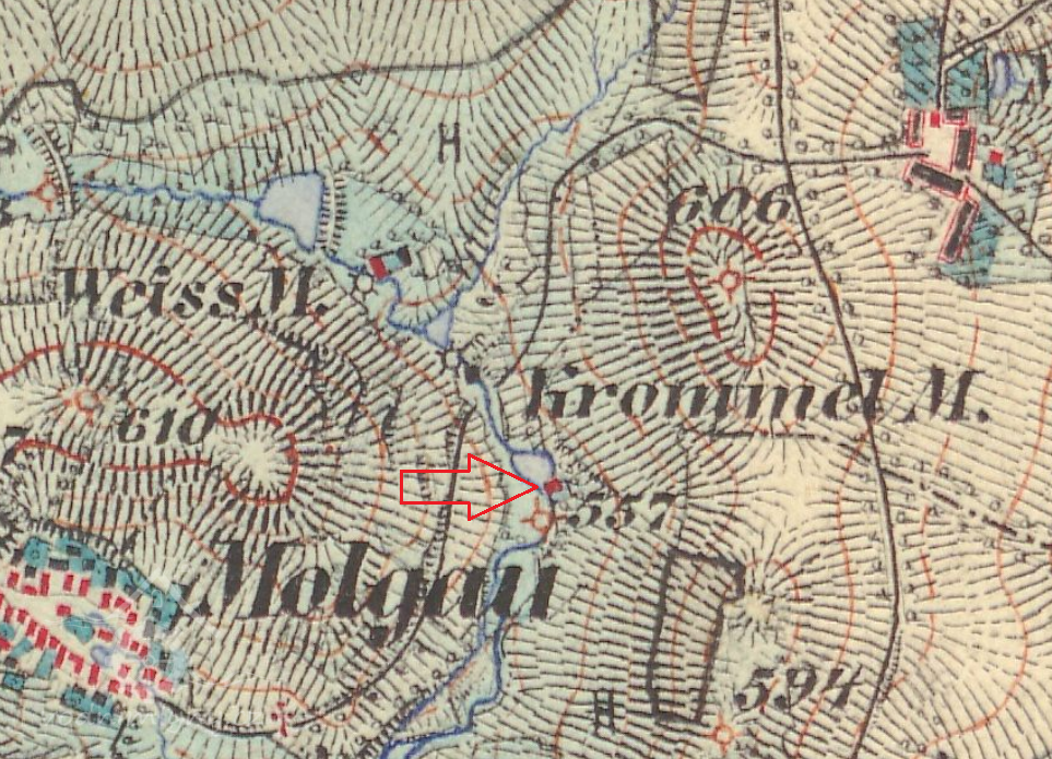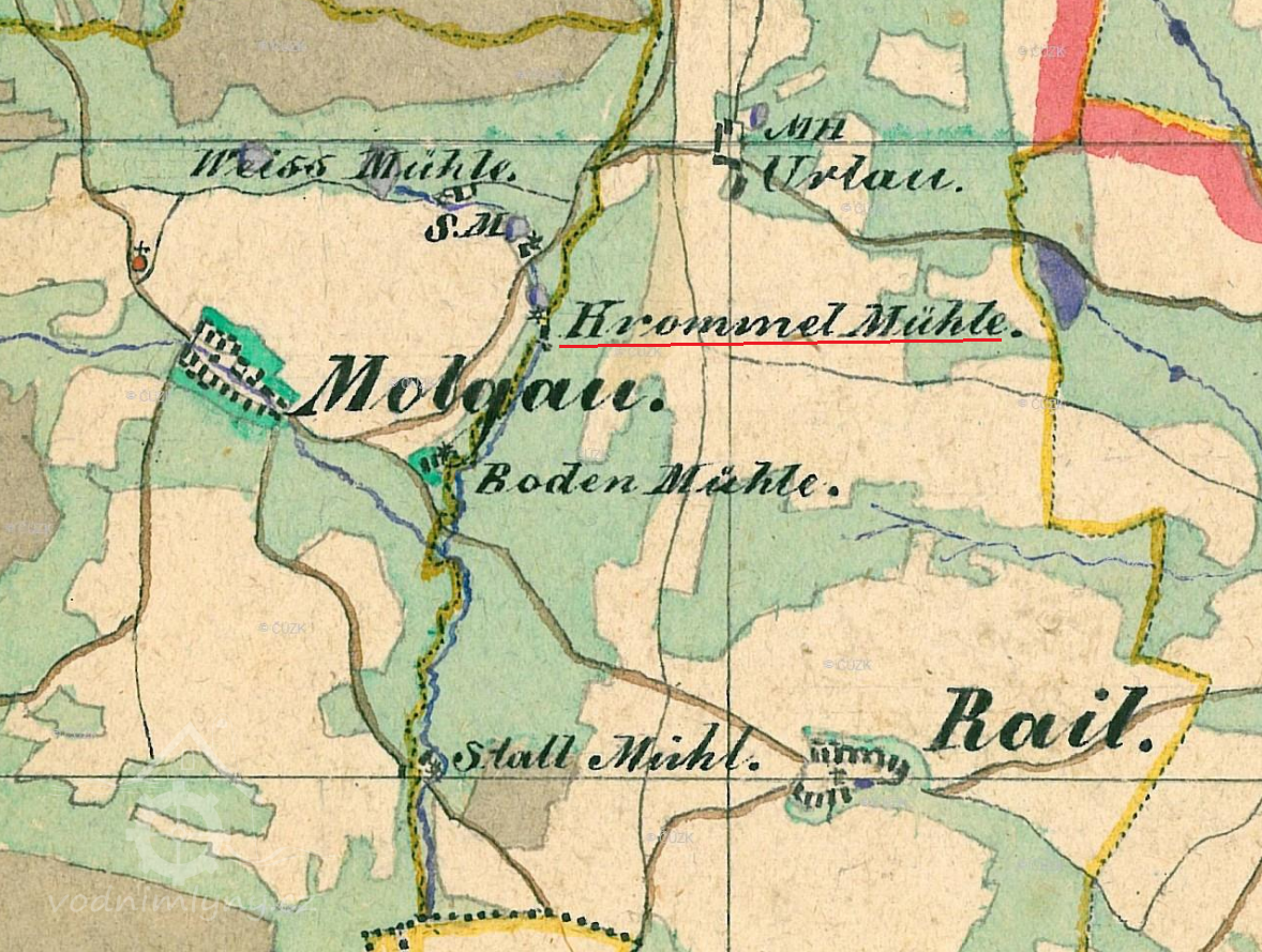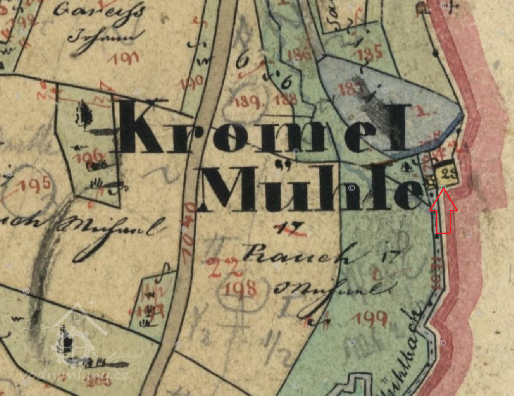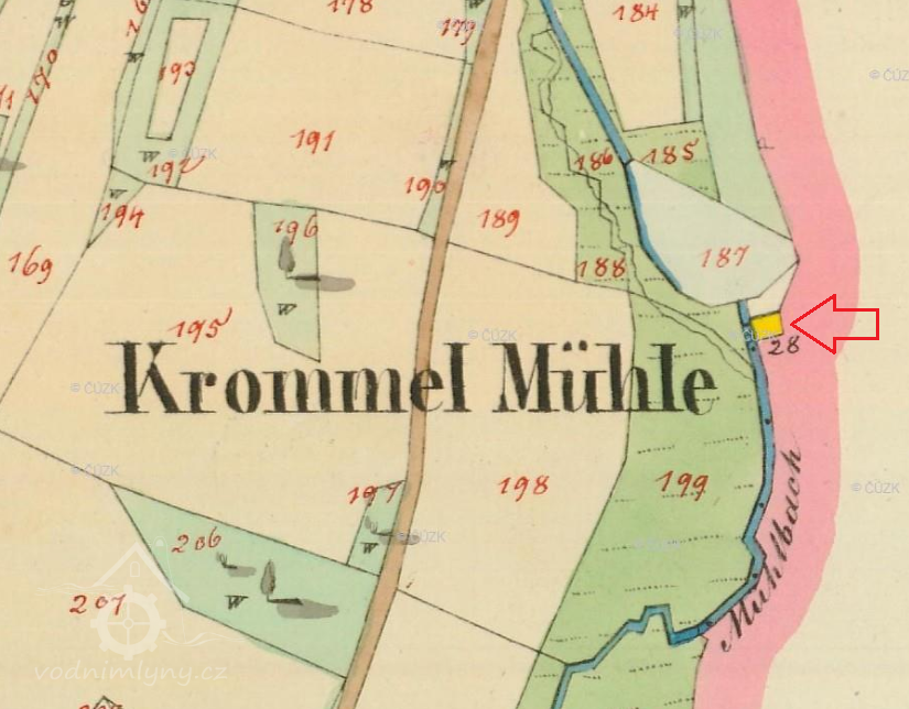 Krommelmühle čp. 2 byl pravděpodobně mladší než sousední Weissmühle čp. 1. Patrně ho postavil některý mlynář z rodu Säcklů nebo Roppertů pro svého syna. Na mapě I. vojenského mapován je zakreslen pod názvem Gromelmühle. Na mapách stabilního katastru je vyobrazen jako menší stavba s vodní nádrží, která v té době procházela úpravami.