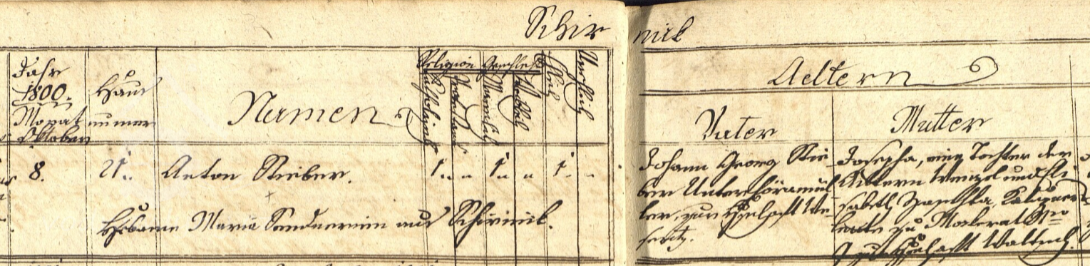 Rok 1805 zde zastihl mlynáře Josefa Rödlinga s manželkou Theresií, v záři 1805 se zde páru narodil syn Anton.