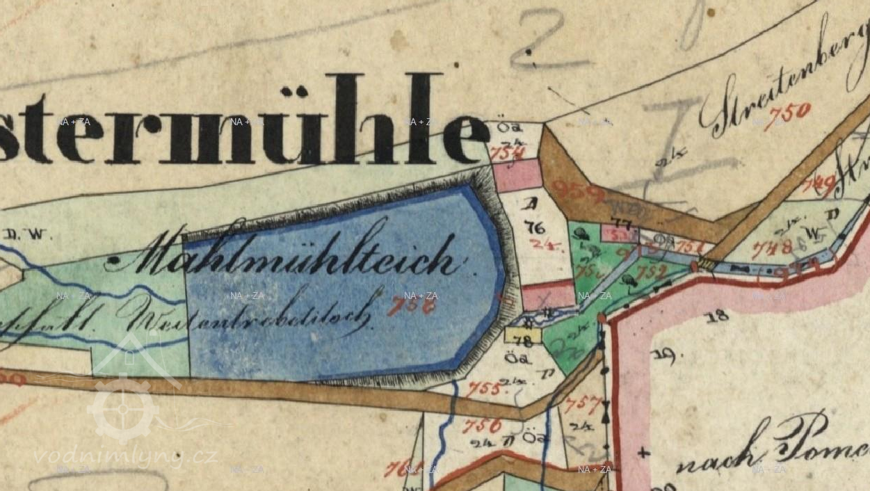 1843 - Streitenberger, vyobrazen mlýn a pila.