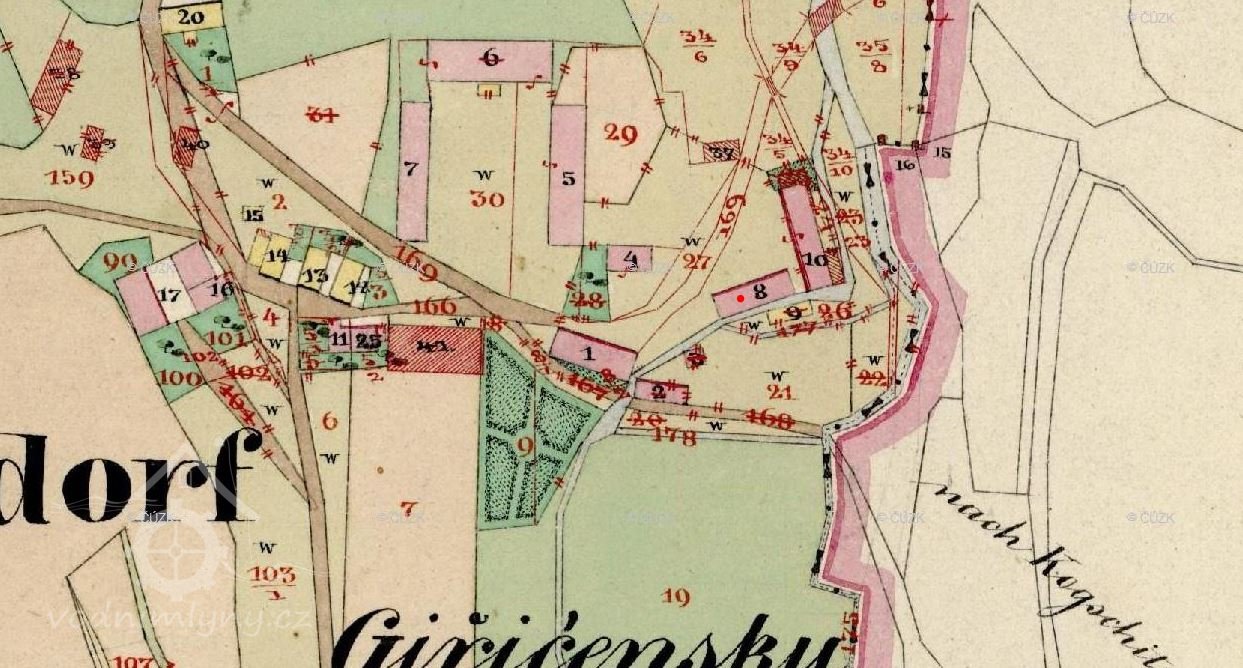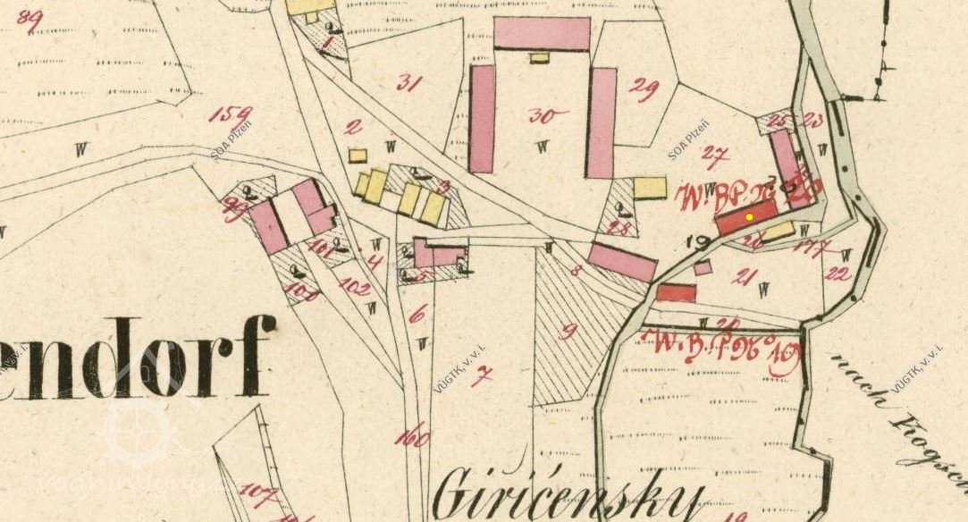 V roce 1790 ve vsi stálo 9 domů. Za dalších 50 let už 20 stavení se 127 obyvateli. Od druhé poloviny 18. století se v držení Jiřičné vystřídalo několik většinou měšťanských rodin (ovesní baroni) - Reinischovi, Schreinerovi, Šebestovi...Počátkem 18. století byla tvrz přeměněna na jednoduchý zámeček na půdorysu obdélníka, při němž byl v 19. století panský dvůr s ovčínem a pivovar, který produkoval 400 - 600 hl piva ročně (v roce 1710 uvařil pouhých 12,5 hl piva za rok). Pivovar, který zde stál už od středověku ukončil svoji činnost v roce 1929.