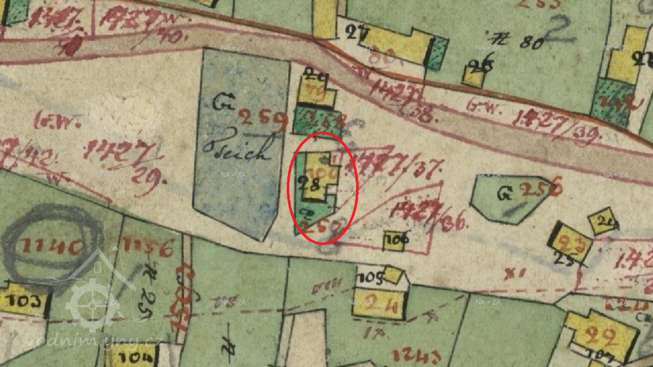 Zaniklý mlýn nacházející se 170 m na západ od pomníku obětem 1. světové války, ovšem na opačné straně silnice. Nejvýše položený mlýn na Bobřím potoce. Na části místa, kde mlýn stál, se nyní nachází kůlna patřící k domu čp. 117. Původní rybník nad mlýnem zanikl a v nedávné době byl kousek výše zřízen rybník nový.