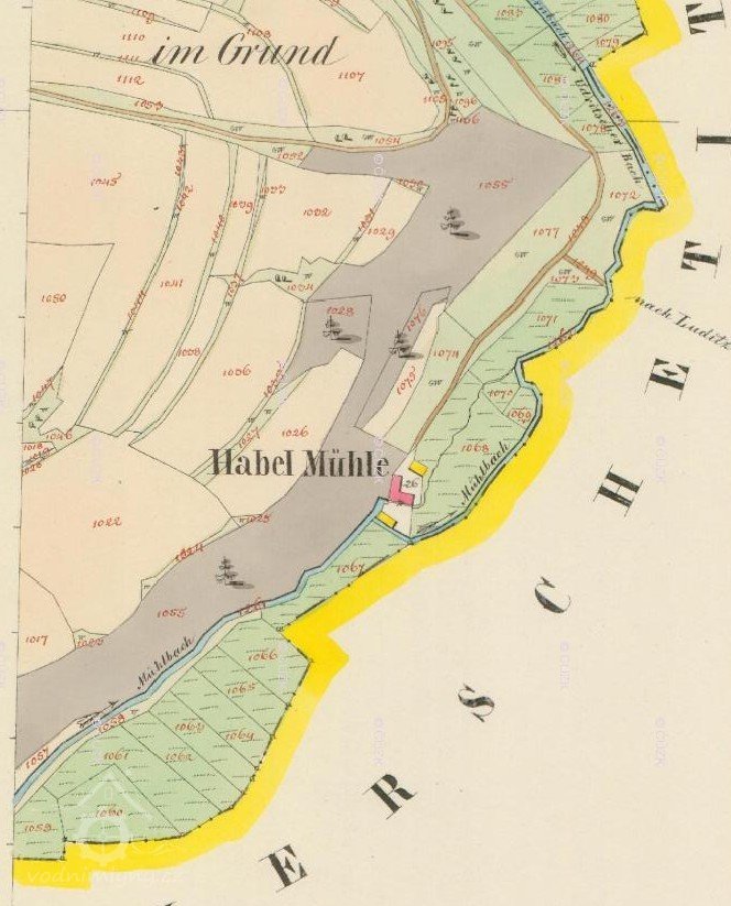 V r. 1930 vlastnil mlýn Josef Böhm. Původní č. p. bylo 23.