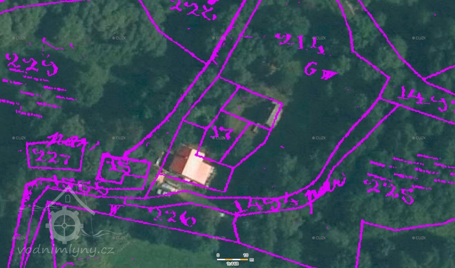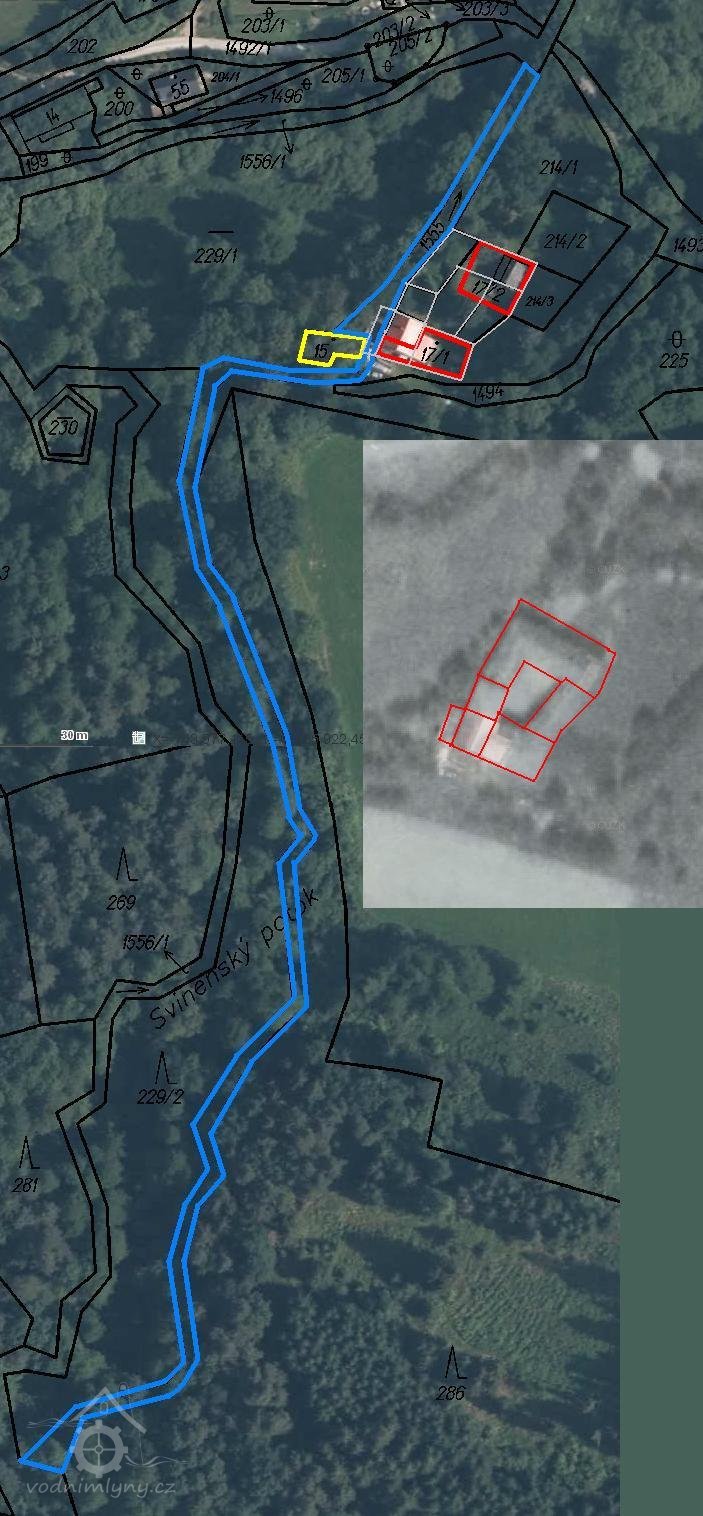 Ovšem při pohledu na katastrální mapu nevede k parcele 2/1 žádný náhon a ani v terénu se mi ho v 11/2016 nalézt nepodařilo.