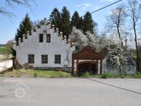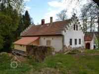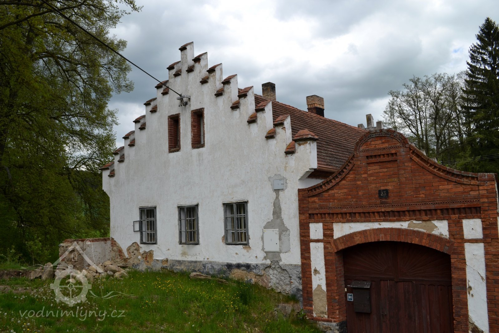 Malebný dvoukřídlý mlýn se zachovalým stupňovitým štítem obytného stavení z první poloviny 19. století.