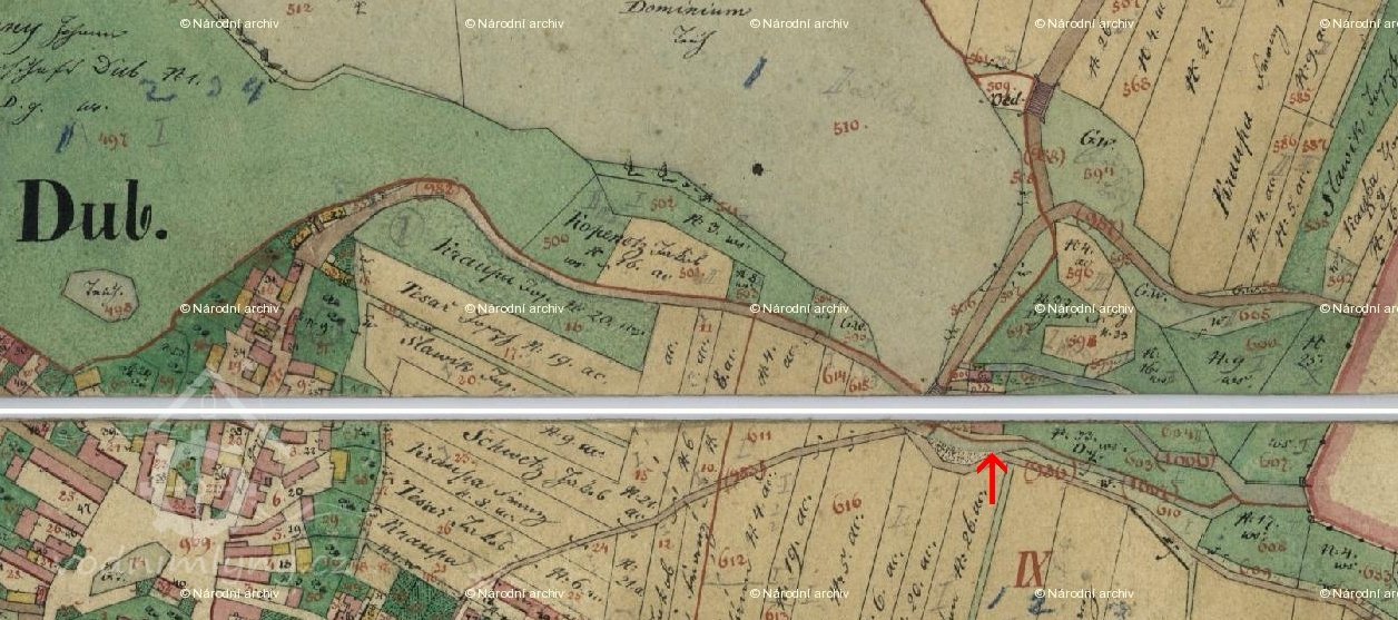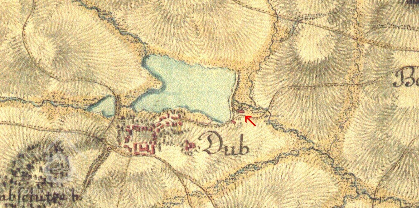Dle tereziánského katastru (rustikál i dominikál) byl u Dubu "panský mlýn o 2 kolech a 1 stoupě na nestálé vodě".