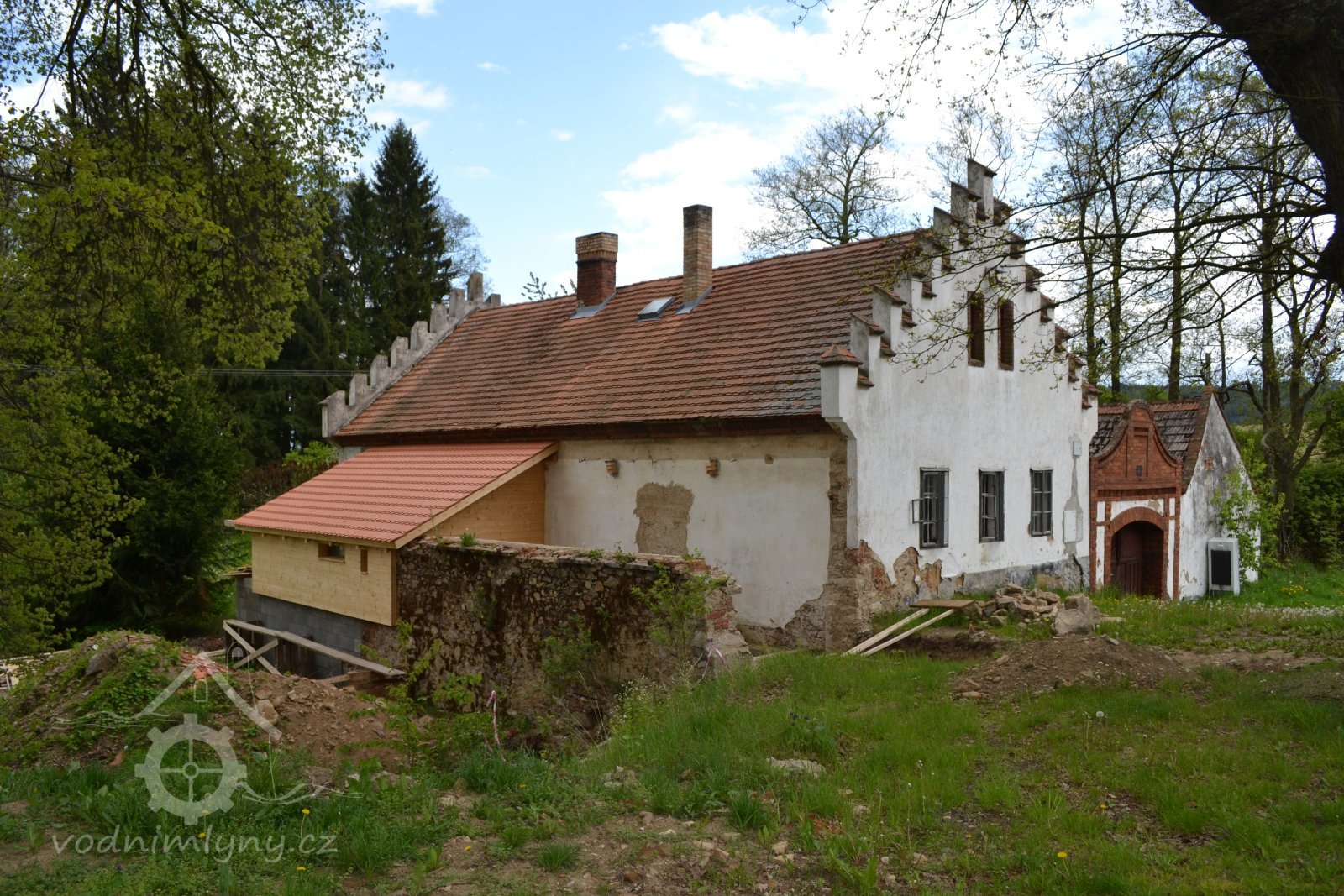 Architektonicky zajímavá budova mlýna s nově budovanou MVE.