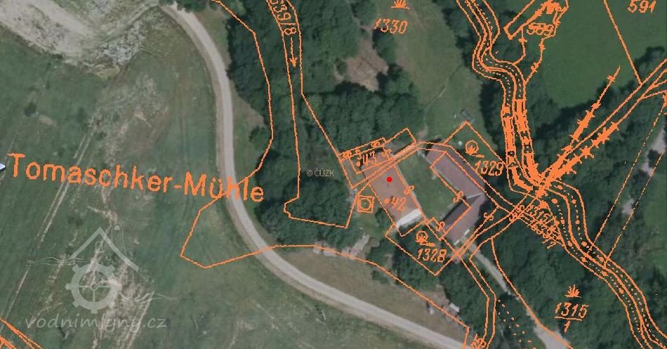 V roce 1887 měl Tomáškův mlýn Jana a Marie Sprinzlových dvě obyčejná složení, která byla poháněna dvěma korečkovými vodními koly na svrchní vodu. Pro zajištění provozu pily na řezání prken sloužilo třetí vodní kolo poháněné stejným způsobem. Mlýn byl naháněn vodou přivedenou přes stavidlo uměle vybudovaným náhonem do retenční nádržky nad mlýnem z Volfířovského potoka. Odtud šla voda žlaby na vodní kola a odpadní strouhou vedenou pod mlýnem zpět do Volfířovského potoka.