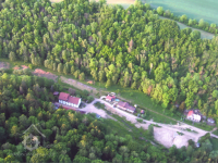 Velká jednopatrová budova, nad mlýnicí velká nástavba.