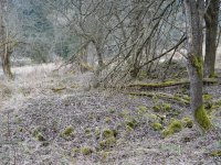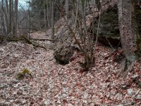 Zříceniny velkého mlýna v Cikánském údolí s pozůstatky zařízení.