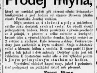 1938 prodal Šimera mlýn za 240 tisíc korun mlynáři Steinocherovi, který měl v nájmu mlýn U Kozáků poblíž Velešína.