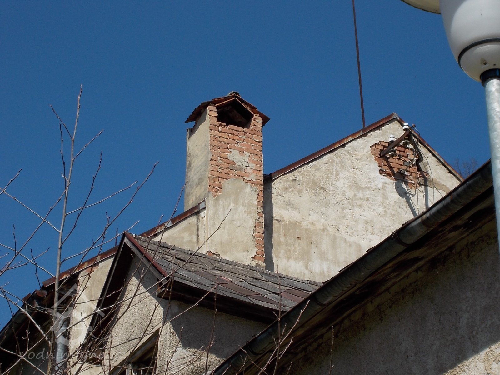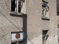 Zřejmě nepůvodní omítka, místy opadaná. Střešní krytina nepůvodní. Celkově budova omšelá s patinou.
