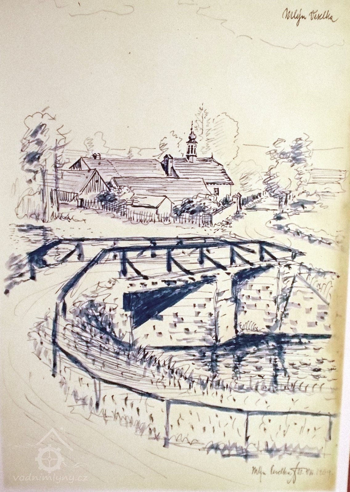 Veselka čp. 1, Kolín Josef, mlýn, 1 turbina Francis, průtok 0,349 m3/s, spád náhonu 3m, výkon 10,4 HP (turbína pravděpodobně od fy. J. C. Bernard, Karlín, plánky na přestavbu z vodních kol na turbínu jsou od fy. Martinek & Calábek, Přerov, stavbu prováděla fy. Fr. Halama z Č. Budějovic - info via HK)