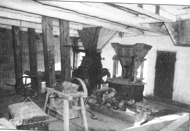 1939: loupačka, 3 ocelové válcové stolice, šrotovací kámen o prům. 85 cm, reforma, čisticí zařízení, zařízení však ve vodní knize označeno jako neupotřebitelné